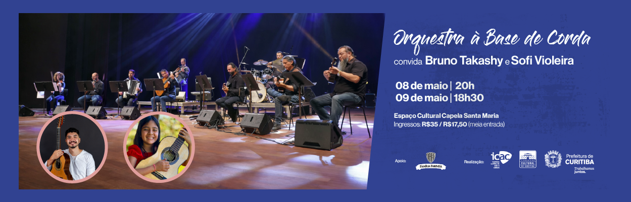 Grupo da Prefeitura se apresenta com o instrumentista Bruno Takashy e o jovem talento de Sofi Violeira, de 11 anos. Nos dias 8 e 9 de maio, a Orquestra À Base de Corda celebra as múltiplas linguagens da música brasileira com Bruno Takashy e Sofi Violeira, convidados cuja especialidade é a viola caipira. As apresentações […]